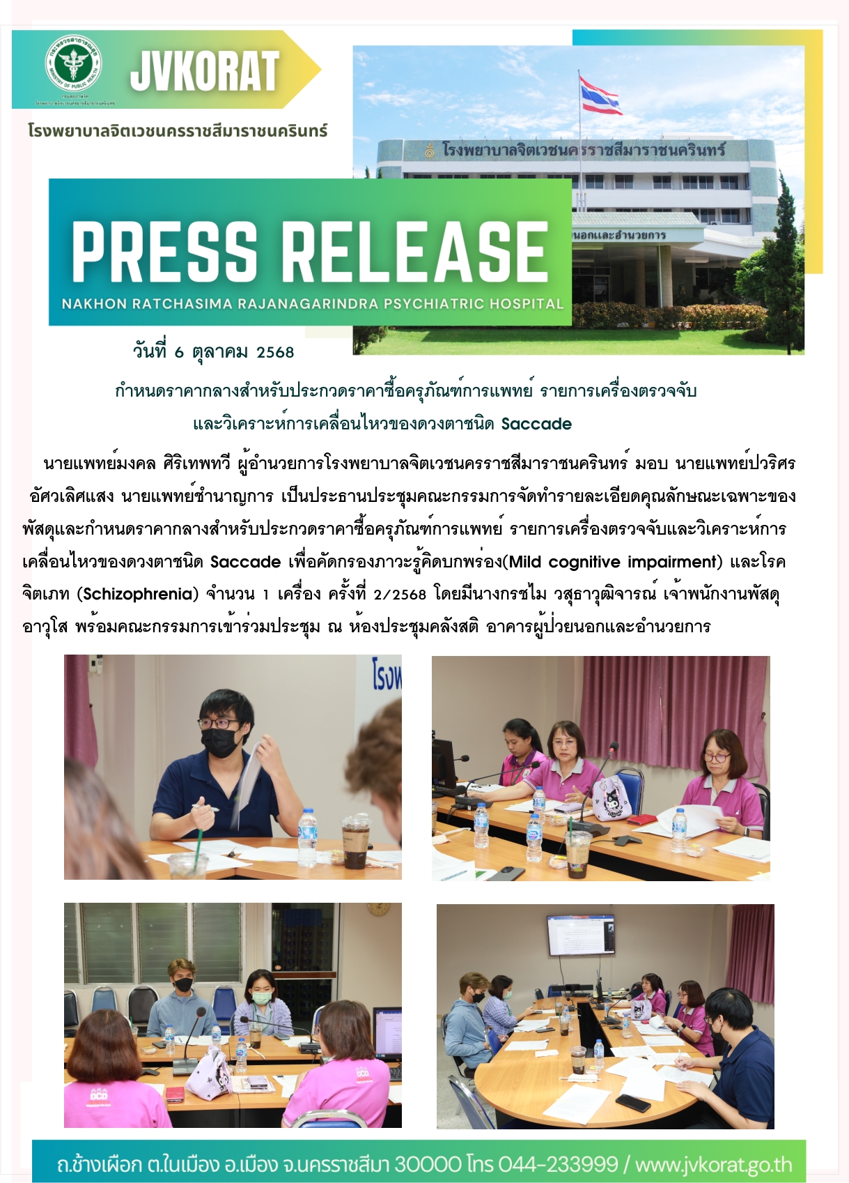 ประกาศเรื่อง บัญชีรายชื่อผู้ผ่านการเลือกสรรเพื่อจัดจ้างเป็นพนักงานราชการทั่วไป โรงพยาบาลจิตเวชนครราชสีมาราชนครินทร์ | 2025/07/01 | 2025-07-01 13:40:13 |