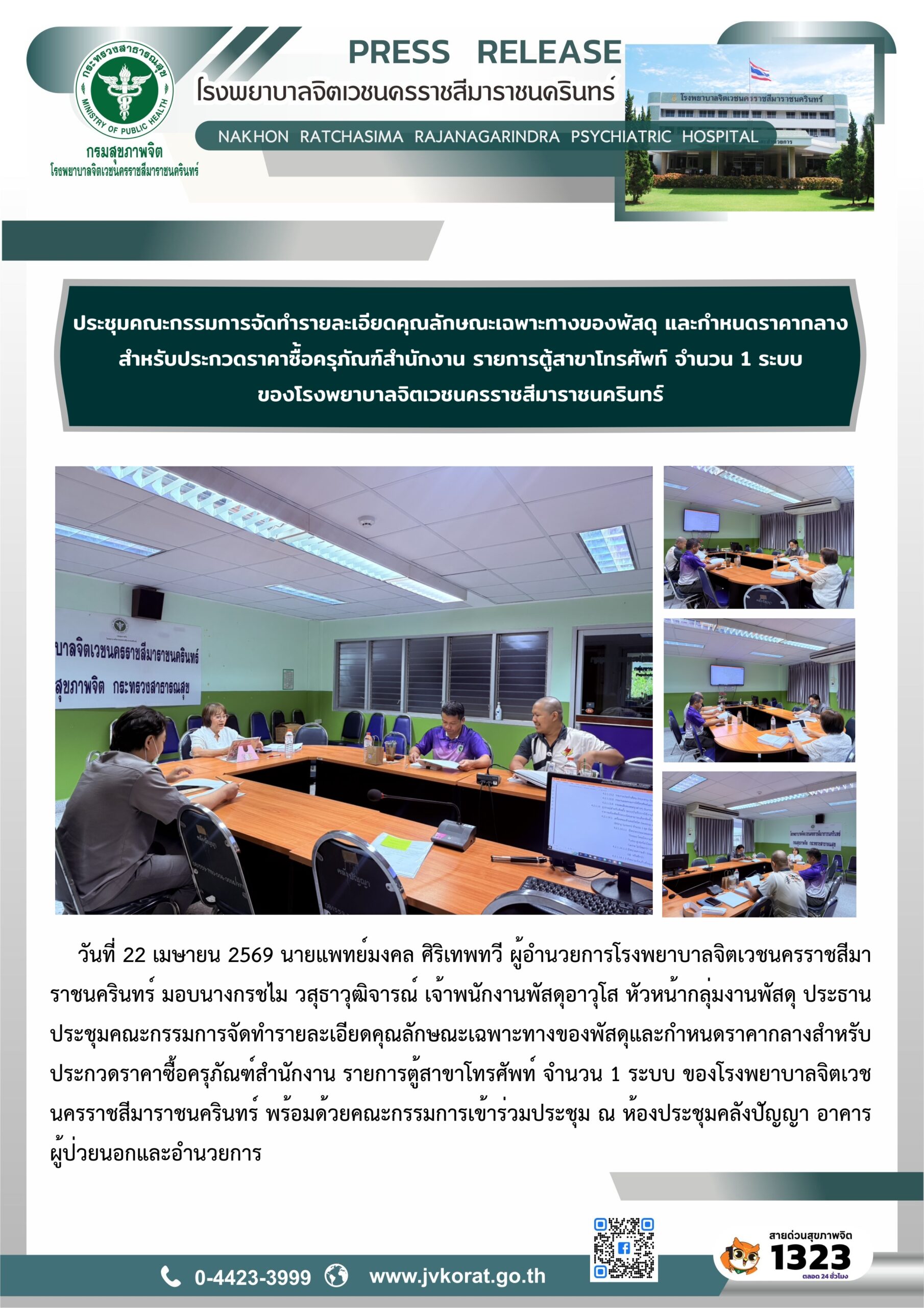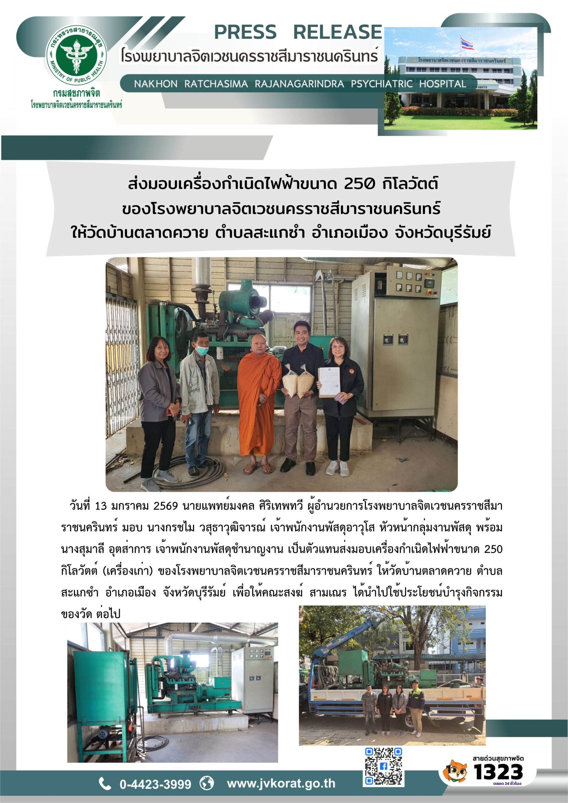 | เรื่อง ประกวดราคาจ้างก่อสร้างอาคารเครื่องกำเนินไฟฟ้า ๑๐๐-๕๐๐ KW พร้อมติดตั้งเครื่องกำเนิดไฟฟ้า ขนาด ๕๐๐ กิโลวัตต์ โรงพยาบาลจิตเวชนครราชสีมาราชนครินทร์ | 2024/06/14 | 2024-06-14 11:07:33 |