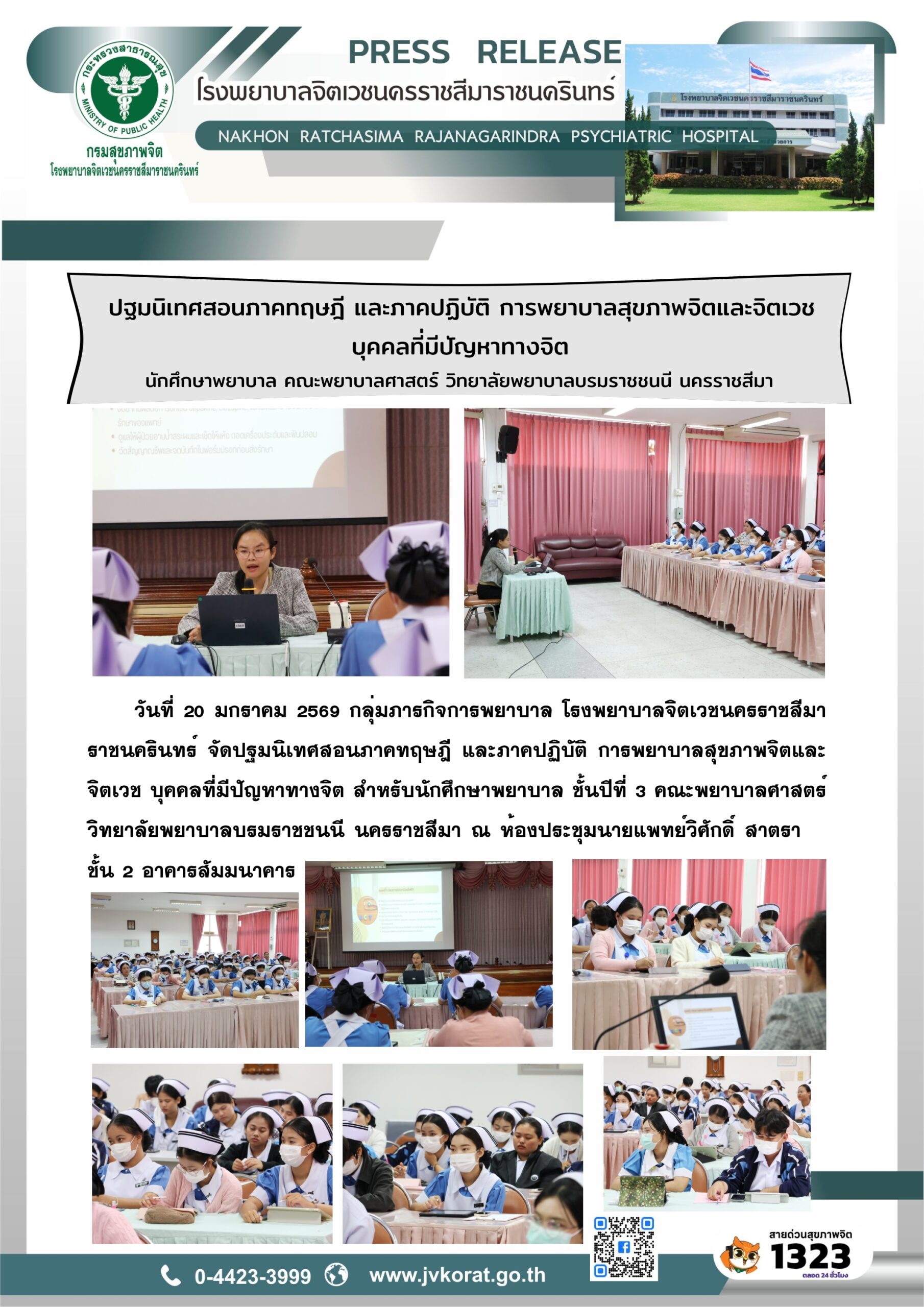 | ประกาศรับสมัครพยาบาลวิชาชีพเข้ารับการอบรมหลักสูตรการพยาบาลเฉพาะทาง สาขาการพยาบาลสุขภาพจิตและจิตเวชชุมชน รุ่นที่ 6 | 2024/04/02 | 2024-04-02 15:59:18 |
