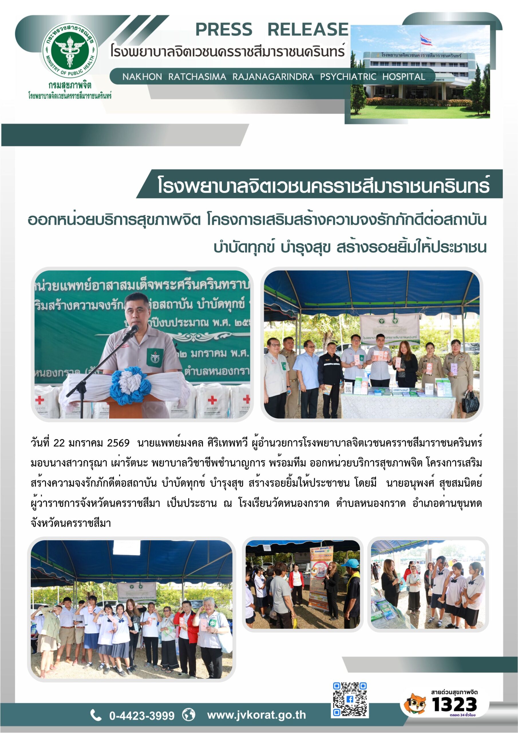 | ประกาศเรื่อง รับสมัครบุคคลเพื่อเลือกสรรเป็นพนักงานกระทรวงสาธารณสุขทั่วไป ตำแหน่งพยาบาลวิชาชีพ และตำแหน่งพนักงานช่วยเหลือคนไข้ เพศชาย | 2026/01/12 | 2026-01-12 10:17:02 |